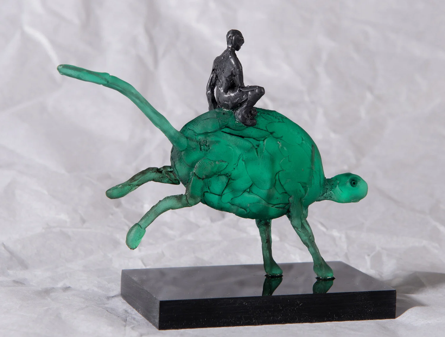 Tiny Rider III is made of a beautiful translucent British eco-resin, allowing interesting glimpses through to its internal structure. It is mounted on a semi-translucent almost black, flat acrylic base, and is 12cm long, 9cm tall, and 5cm wide including the base. It is for sale as a limited edition of 24. It is initialled on the creature’s right side near its tail, and comes with a signed letter of authentication, stating its edition number. See my further listings to purchase any of the others in the series or the whole group together.